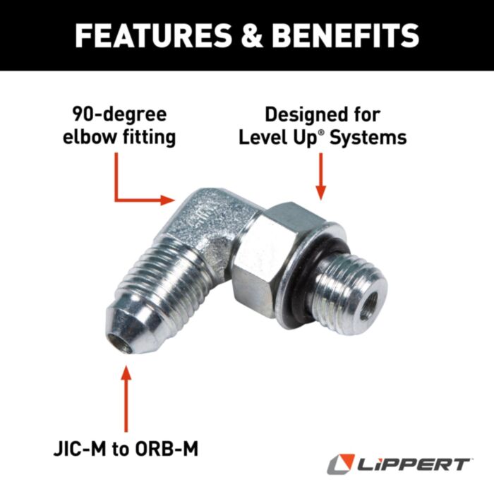 - COMPATIBILITY - This 1/4" fitting is designed to replace the 90-degree elbow fitting on Level Up hydraulic leveling systems, including Level Up towable, Level Up motorized and Lippert motorized hydraulic leveling systems